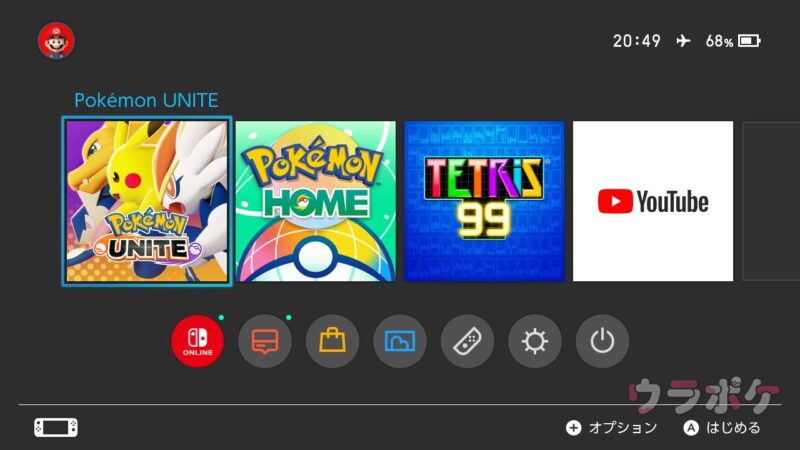 ジョイコンまたはコントローラーのホームボタンを長押しすることで機内モードにすることができます。
