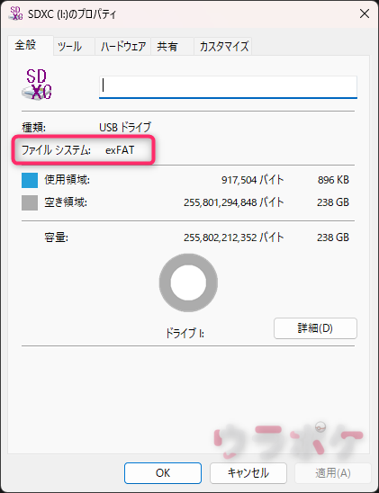 MicroSDカードのフォーマット形式の確認方法