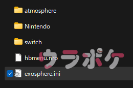 SDカード内の「atmosphere>config_templates」内にある「exosphere.ini」をSDカード直下にコピペします。